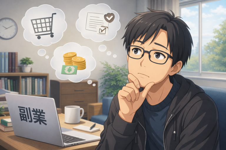 はじめに 副業って、興味はあるのに不安が多すぎて行動に移しづらいですよね。特に「会社員で副業初心者」の人ほど、不安が多くて止まりやすいです。でも正直、副業をするうえで最初に必要なのは「特定の副業の正解」よりも、不安を潰して行動できる状態になることなんですよ。 この記事は「この副業が最強!」みたいな押しつけや決めつけはしません。よくある疑問をQ&Aで解決の足掛かりにしつつ、あなたが自分に合う […]