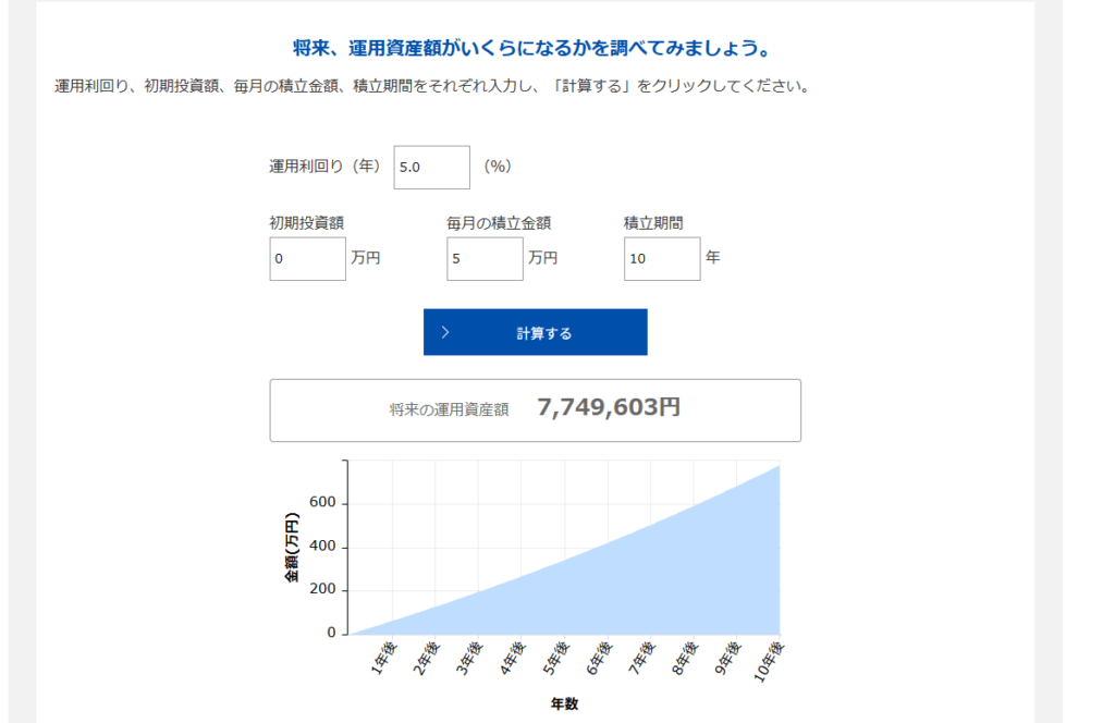 今回はアセットマネジメントone様のサイトよりシミュレーションをしてみます。
