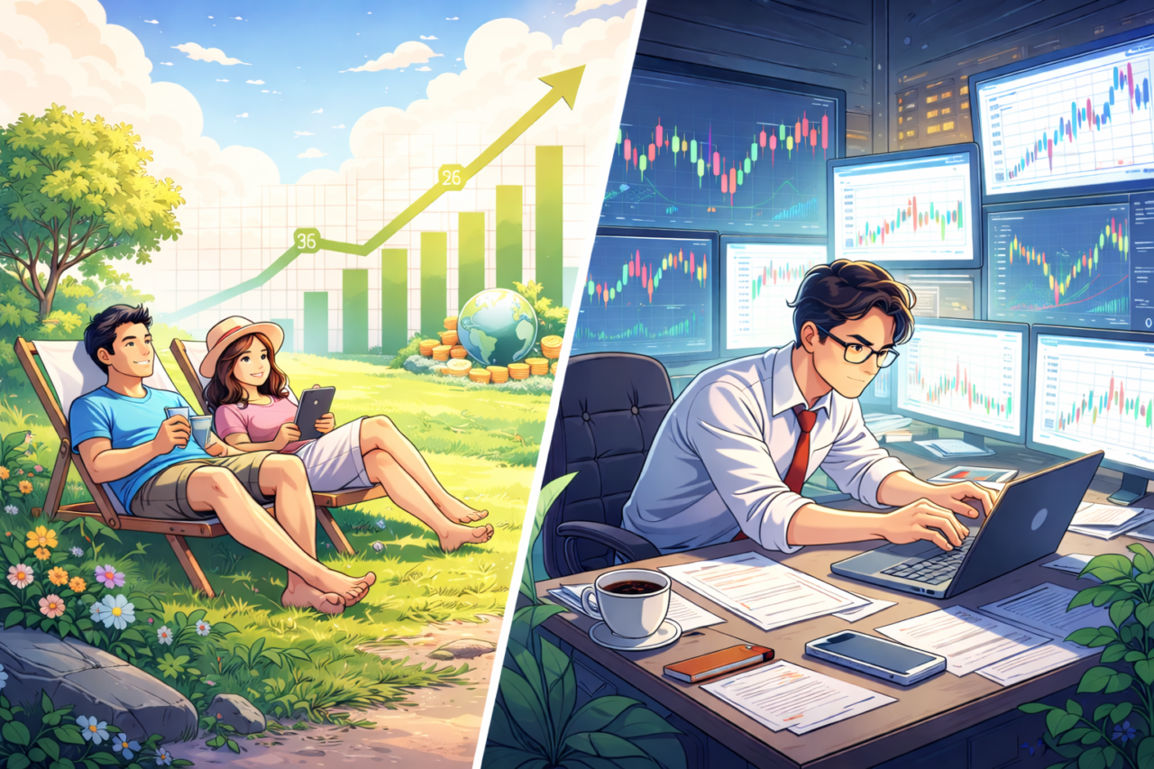 はじめに:結論から、結局なにが違うの? 投資を始めると、だいたい一度はぶつかるのがこれです。「インデックスとアクティブ、結局どっちがいいんですか?」ってやつです。 で、ここでややこしいのが、どっちも“投資”だけどゲーム性が違うこと。ざっくり言うとこうです。 この記事は「概念の説明だけ」じゃなくて、なるべく初心者目線でいきますね。読んだあとに「自分はこっち寄りだな」って判断できるようにします。難しい … 続きを読む インデックス投資とアクティブ投資の違いを、具体例でわかりやすく解説